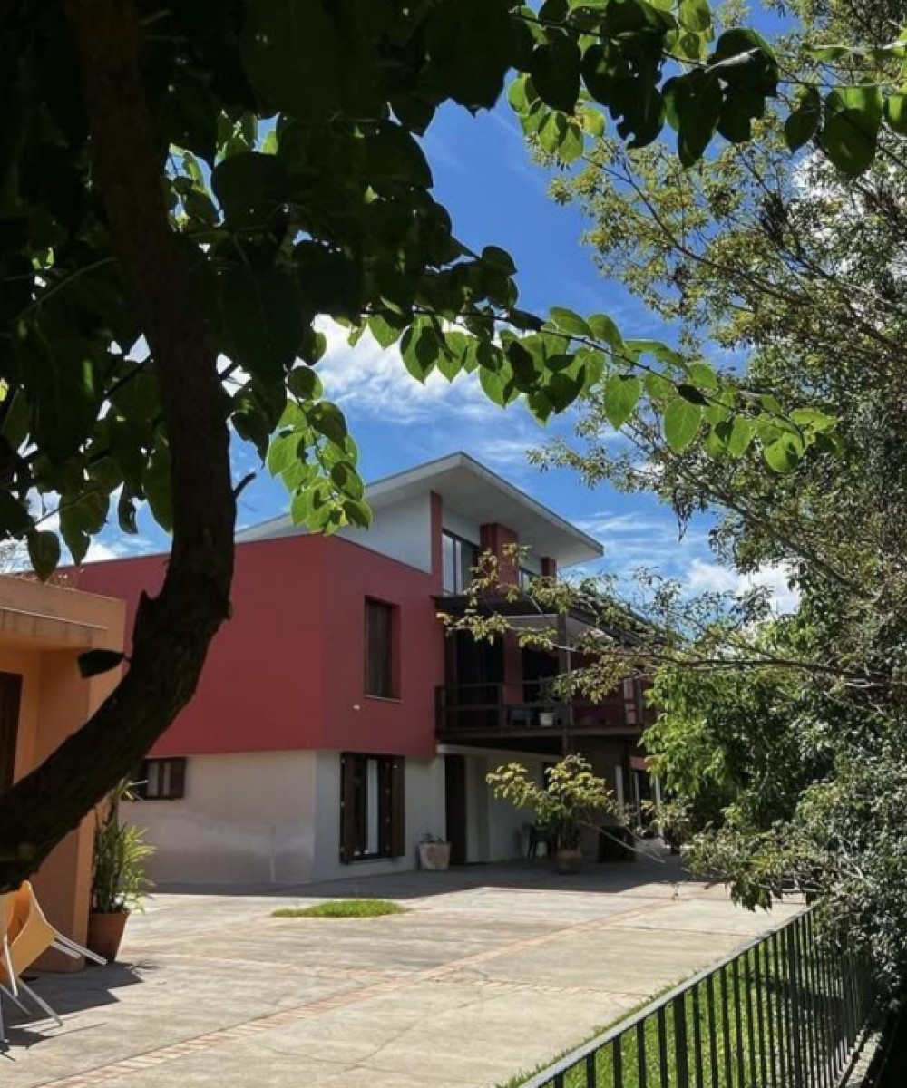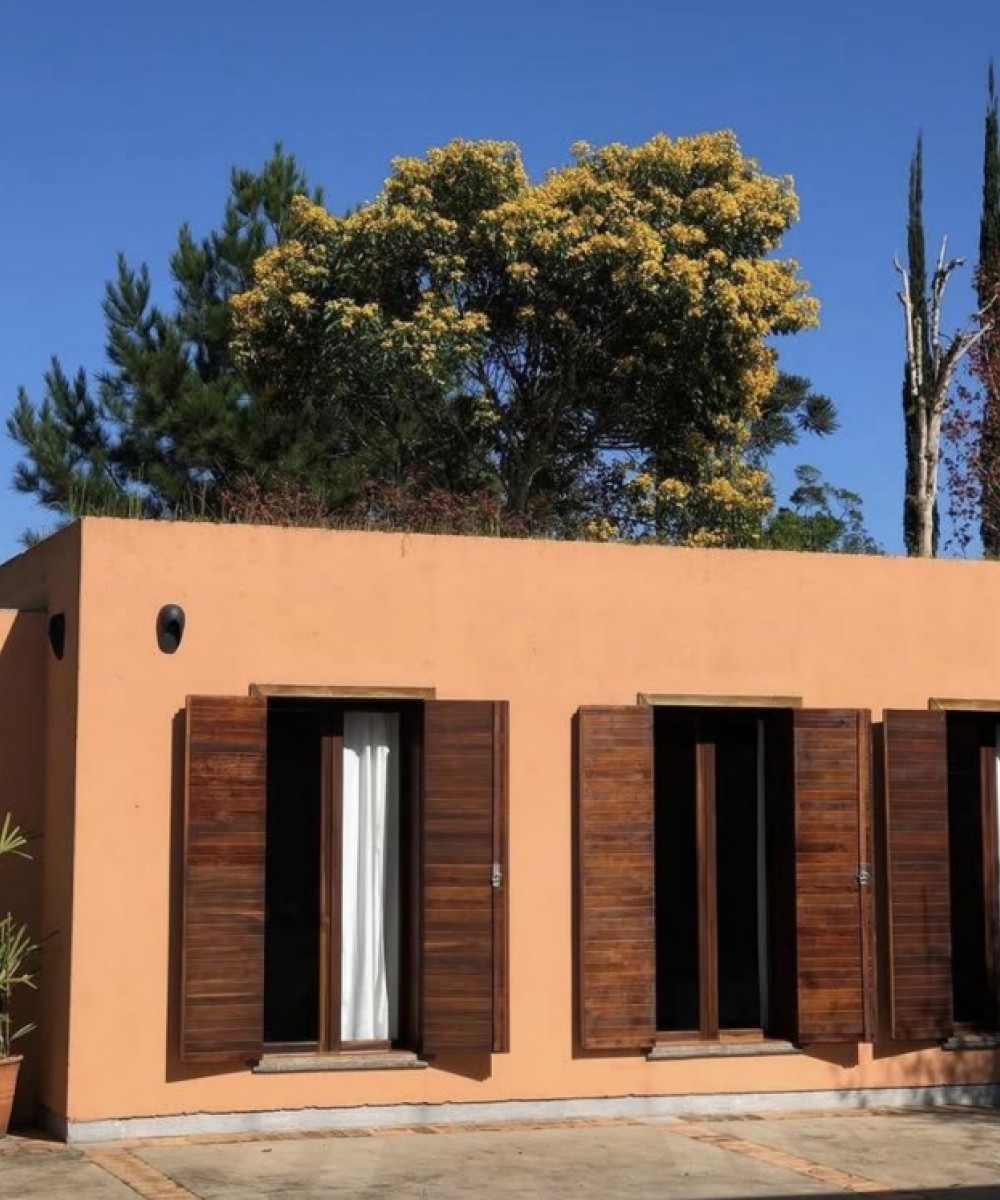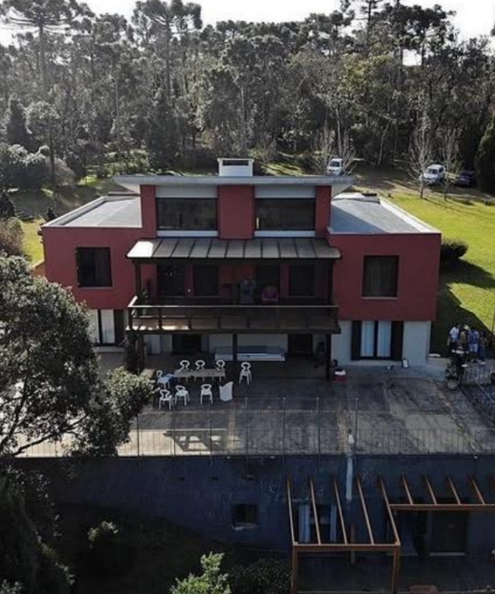 A casa Rossa possui 4 suítes amplas e iluminadas, todas com vista para o jardim, deck com vista panorâmica, cozinha completa e uma grande sala de jantar e estar com lareira e uma quinta suíte com acesso independente.