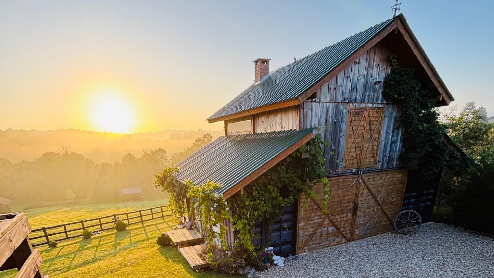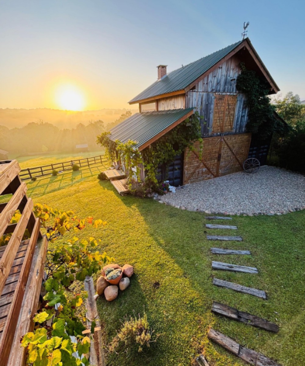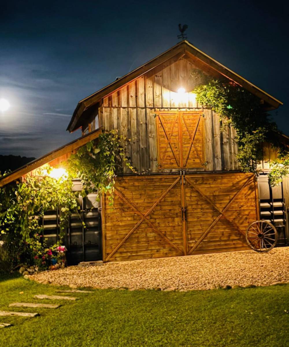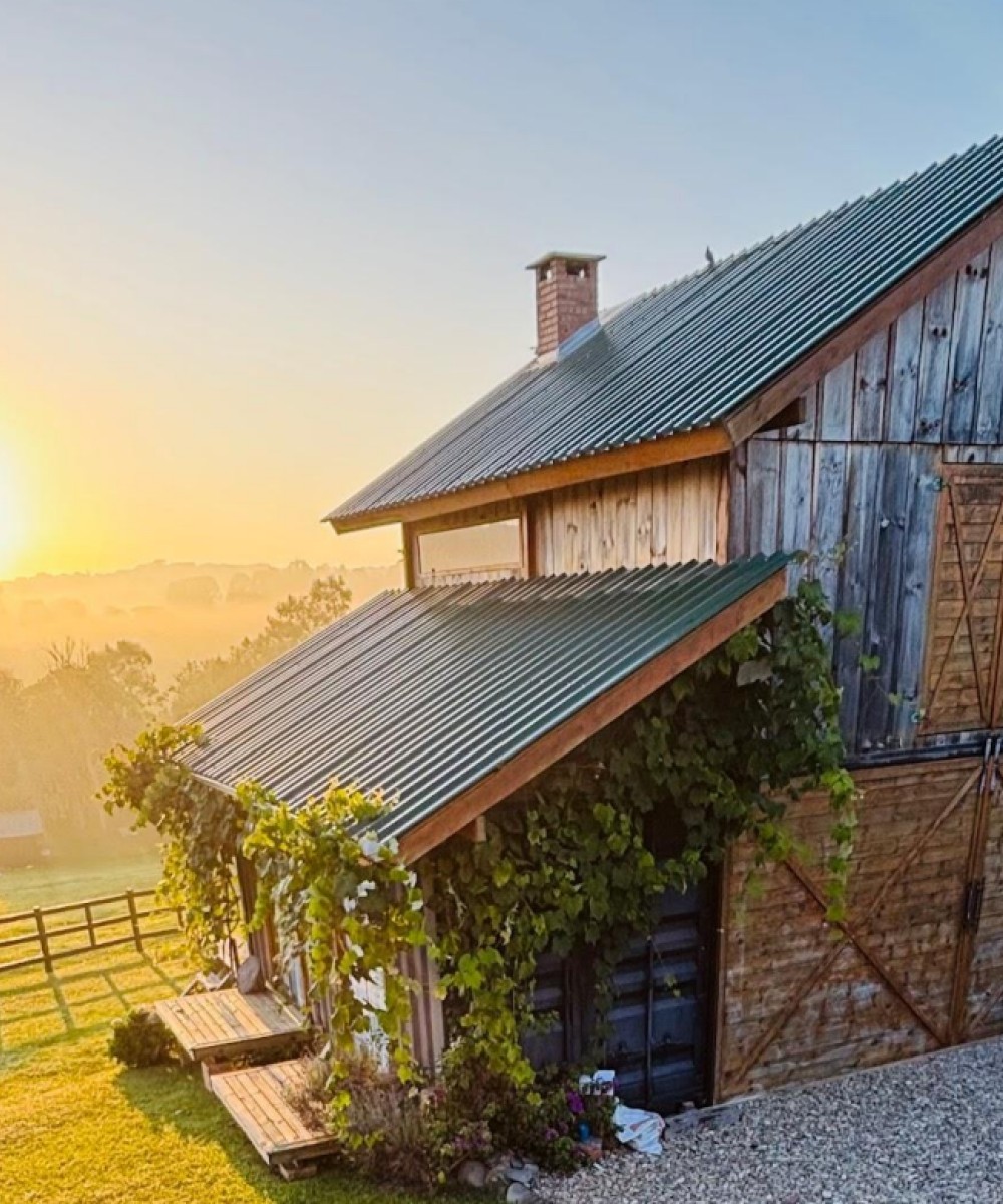 Nosso casa tem uma arquitetura de celeiro americano, é rústica e aconchegante. O piso térreo possui: 2 quartos, 2 banheiros e cozinha. O segundo piso possui um loft. E para aquecimento do ambiente em dias mais frios, há um fogão a lenha na cozinha e uma lareira no loft. A vista é espetacular, tanto no amanhecer como no pôr do sol.