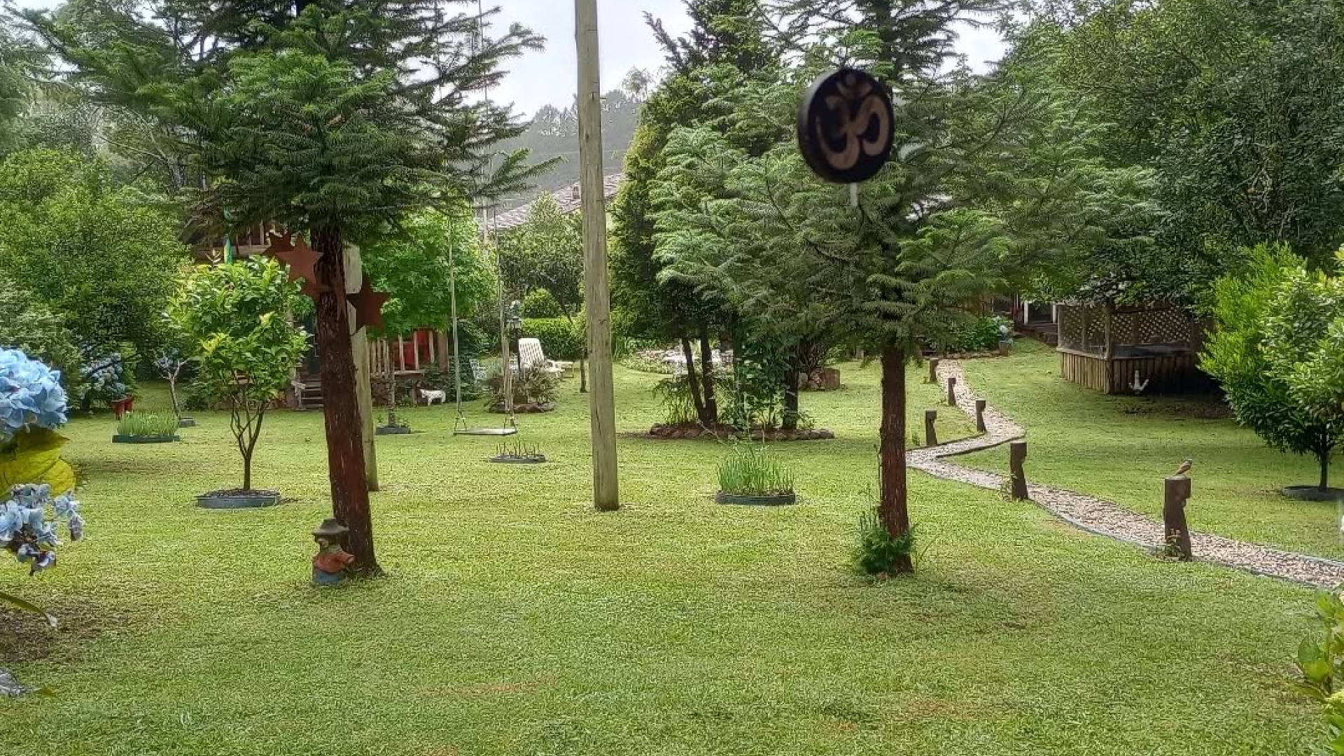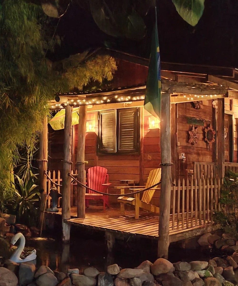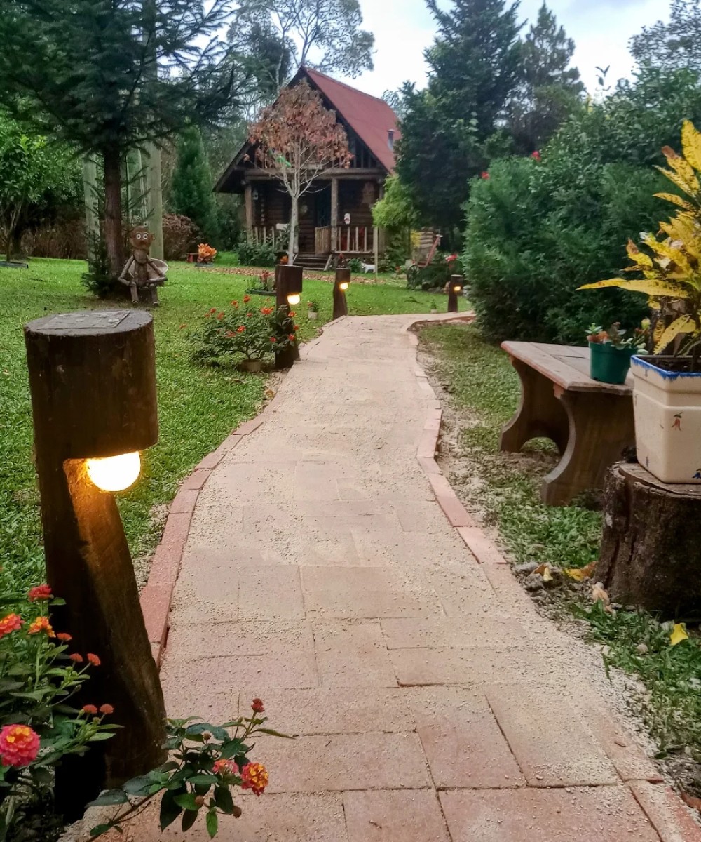 A casa de toras é estilo canadense, tem dois pavimentos cozinha completa ,duas Varandas, TV 50 polegadas com Netflix e YouTube, lareira de canto na sala, o chalé cafofo é uma pequena casa com cozinha completa varanda e um pequeno deck sobre um lago muito aconchegante, tem uma salamandra tipo lareira, um espaço extremamente romântico, tem um balanço de 9 m e outro balanço tipo namoradeira, toda área tem Gramado muitas flores e iluminação colorida à noite, estacionamento interno, é ver para crer.